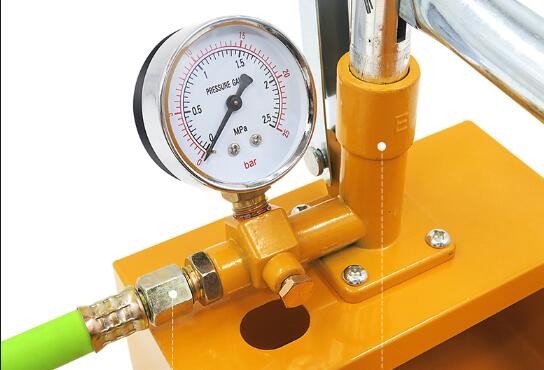 泵可以通過按遙控器或手動按鈕來啟動試壓泵。使用泵前,只需在電接點壓力表上設置壓力上限值(根據壓力高低需要不同的片),在數顯時間繼電器上設置保持時間,然后按遙控器或手動按鈕啟動試壓泵。壓力增加速度可以通過手動壓力調節閥來調節。當壓力達到預設的上限目標值時,試壓泵會自動停止進入保壓狀態,通過壓力表可以實時觀察壓力變化。